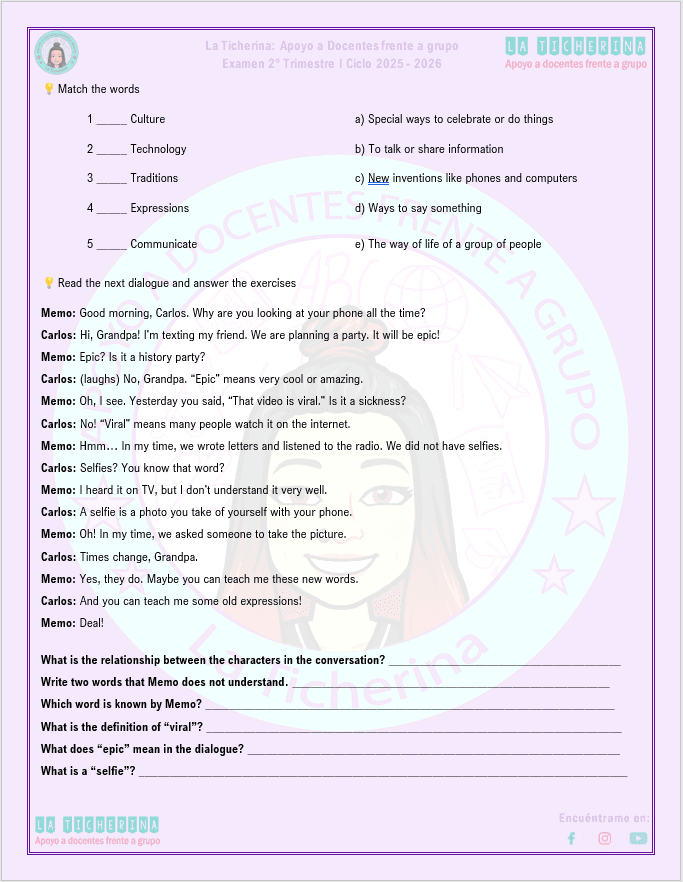 Examen Inglés 2° Trimestre / 3° de Secundaria Ciclo 2025 – 2026