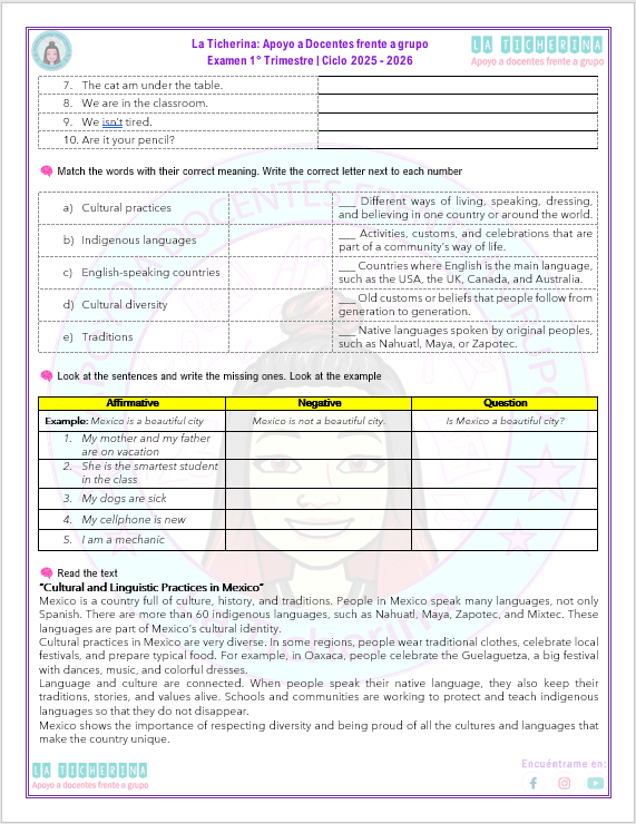 Examen Inglés Secundaria 1° Trimestre | 3° grado | Ciclo 2025 – 2026