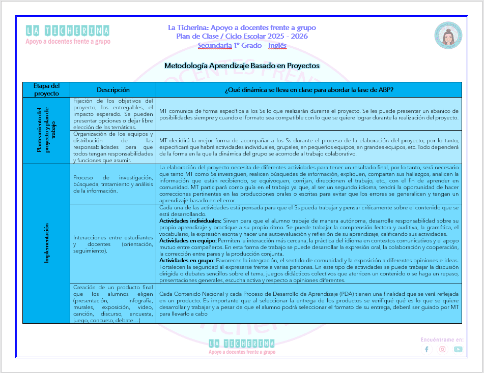 Esta planeación es desarrollada por medio de la metodología «Aprendizaje Basado en Proyectos»