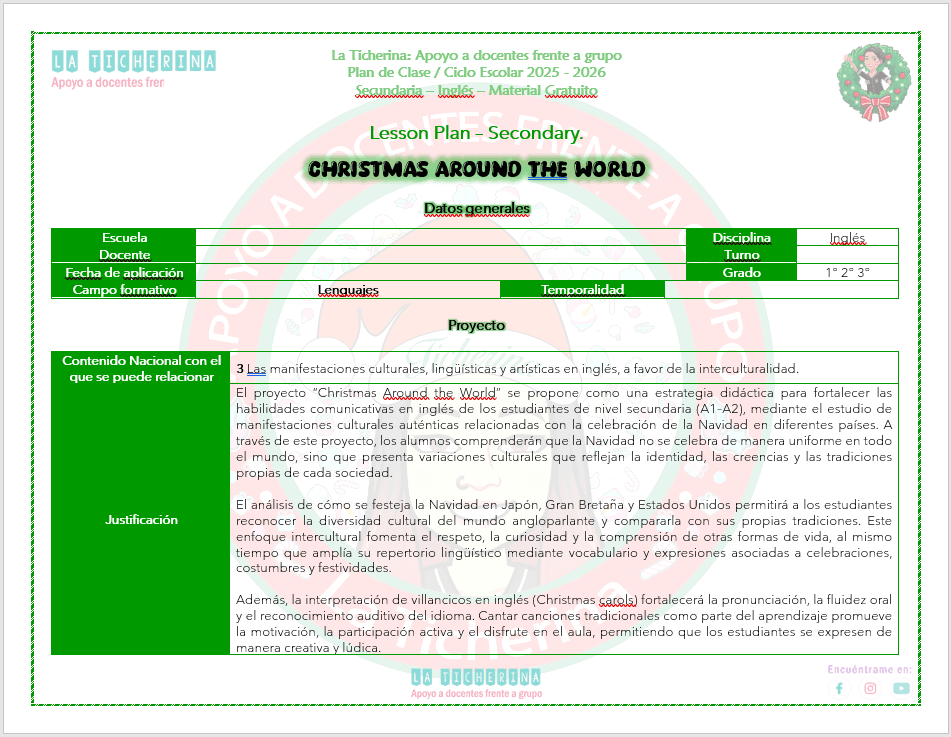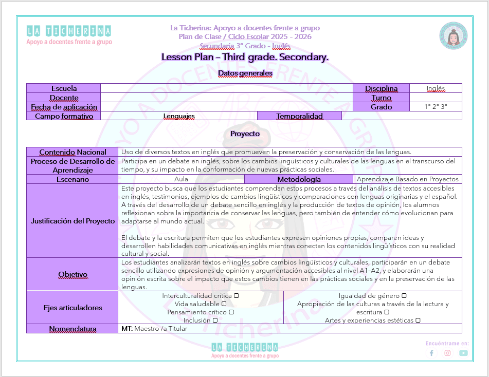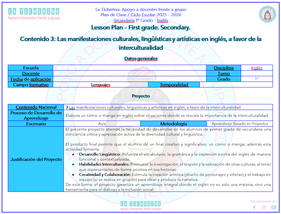 Planeación Inglés Contenido 3 / Las manifestaciones culturales, lingüísticas y artísticas en inglés… / 1° de Secundaria Ciclo 2025 – 2026