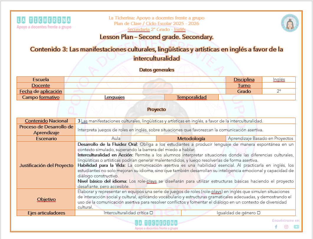 Planeación Inglés Contenido 3 / Las manifestaciones culturales, lingüísticas y artísticas en inglés… / 2° de Secundaria Ciclo 2025 – 2026