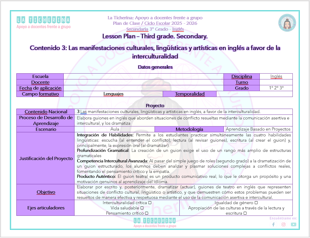 Planeación Inglés Contenido 3 / Las manifestaciones culturales, lingüísticas y artísticas en inglés… / 3° de Secundaria Ciclo 2025 – 2026